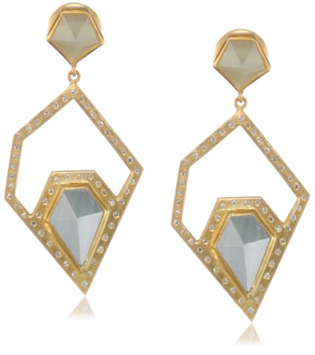 Lauren Harper Collection Archipeligo Blue 18k Gold, Milky Aquamarine and Diamond Pyramid Post Earrings Feature