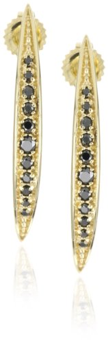 Made in Thailand Gold icicle earrings with black diamonds .16ct 14k Gold post for pierced ears Mizuki's icicle earrings are made of 14k gold and are filled with sparkling black diamonds A simple and classic earring, perfect for everyday wear!
