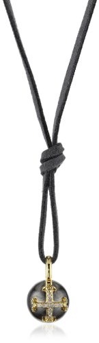 Mizuki's classic adjustable 40" micro suede cord comes with a signature oxidized silver ball adorned with a 14k gold cross charm. This blackened ball with diamond cross is finished with a unique brush texture...