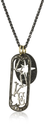 Length of Necklace: 19"; Silver Starburst Charm With Gold Bail length: 1.1", Width: .65"; Silver Love Tag length: 1.81", Width: .58" The cutout starburst medallion comes with .1 Carats of black diamonds Both charms are removable Imported