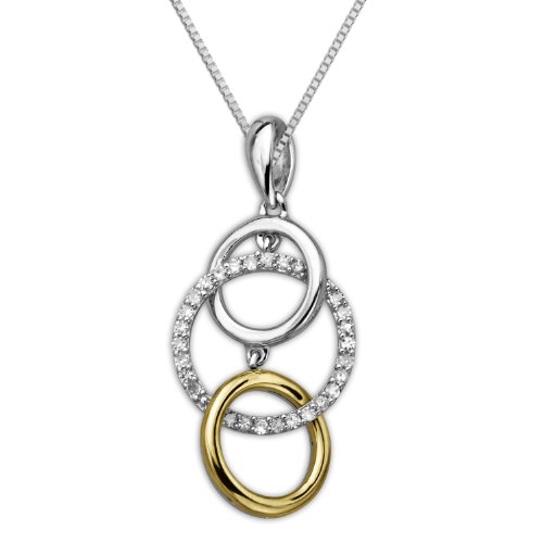 S&G Sterling Silver and 14K Yellow Interlocking Design Diamond Pendant Necklace, 18"