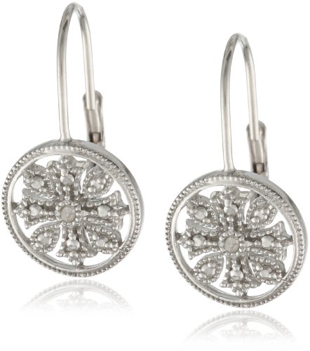 Sterling Silver Diamond Accent Floral Circle Leverback Earrings Feature