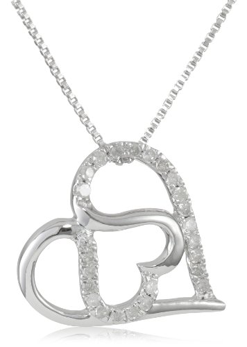 Sterling Silver Diamond Double Heart Pendant Necklace (1/6 cttw, H-I Color, I2 Clarity), 18" Feature