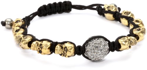 Very Me ''FUN'' Black Diamond Swarovski Crystal Gold Tone Skulls Cord Bracelet, 10mm Feature