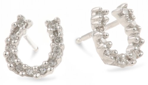 XPY 14k White Gold Diamond Horseshoe Earrings (1/10 cttw, I-J Color, I2-I3 Clarity) Feature