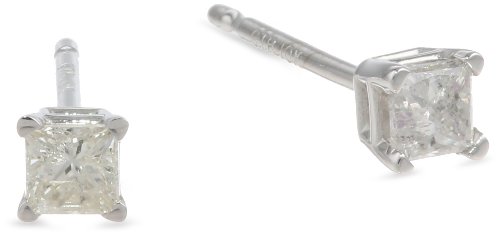 10k White Gold Princess-Cut Diamond Studs (1/8 cttw, J-K Color, I2-I3 Clarity) Feature