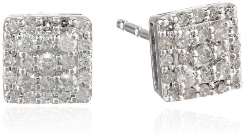 10k White Gold Square Cluster Earrings (0.25 cttw, I-J Color, I2-I3 Clarity) Feature