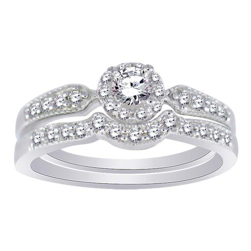 14k White Gold 0.42 cttw Diamond Bridal Ring Set, Size 7