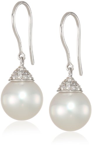 Baggins White Gold with Diamond Cap White South Sea Pearl Dangle Hook Earrings Feature