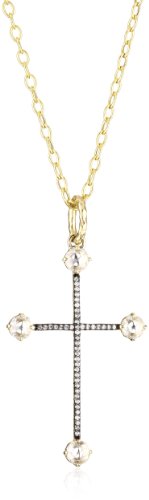 Imported This statement cross is made up of white full cut diamonds and four rose cut diamonds that make up each point of the cross 2.64ct. The diamonds are brushed with a blackened finish, to make them sparkle even more A simply stunning piece! It is a statement all on its own! Mizuki's four point rose cut diamond cross has a blackened finish and is filled with glistening white full cut diamonds. You are sure to make a statement while wearing this unique cross This beautiful cross hangs on a 24" open link cable chain that is crafted in 14k Gold and can be worn separately