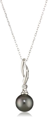Radiance Pearls "Pearl Jewelry" 14K White Gold 9mm Tahitian South Sea Pearl and Diamond Pendant Necklace Feature