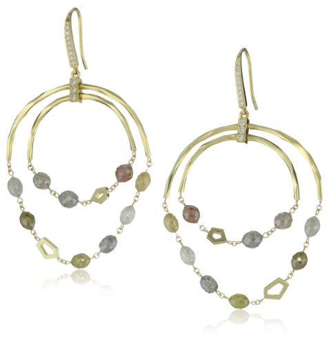 Ron Hami "Dancing Octagons" Yellow Gold Diamond Briolette Double Row Drop Earrings Feature