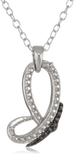 Sterling Silver Black Diamond Accent Half Butterfly Pendant Necklace (0.01 cttw), 18" Feature