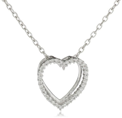 Women's Sterling Silver Diamond Shadow Heart Pendant Necklace (1/ 10 cttw, I-J Color, I2 Clarity), 18" Feature