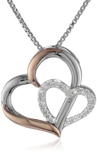 XPY 14k Rose Gold, Sterling Silver, and Diamond Double Heart Pendant Necklace, 18" (0.10 cttw, I-J color, I2-I3 clarity) Feature