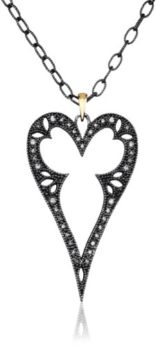 Mizuki 14Kt Shadow Silver Chain Charm Long Heart Diamond Pendant Necklace (.21Ct), 24"