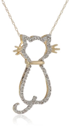 XPY 10k Yellow Gold Diamond Cat Pendant (.08 cttw) Feature