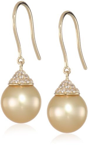 Baggins Yellow Gold with Diamond Cap Golden South Sea Pearl Dangle Earrings Feature