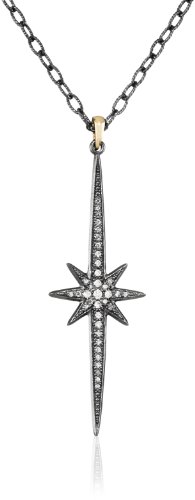 Mizuki 14Kt Shadow Silver Chain Charm Medium Starburst Diamond Pendant Necklace (.30Ct), 24"