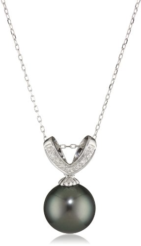 Radiance Pearls "Pearl Jewelry" 14K White Gold 11mm Tahitian South Sea Pearl and Diamond Pendant Necklace Feature