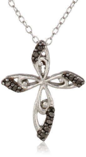 Sterling Silver Black-Diamond Fancy Cross Pendant Necklace Feature