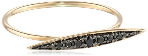 The icicle charm that sits on top of the gold shank is filled with glittering black diamonds and has a unique blackened finish .04ct A cool and comfortable ring that adds extra sparkle to your everyday wardrobe A modern twist to Mizuki's signature icicle collection, this icicle ring has a rich gold base and a black diamond icicle top with blackened finish, size 5 Imported
