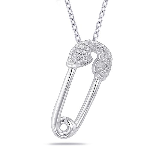 Sterling Silver Diamond Baby Safety Pin Pendant Necklace (0.06 CTTW, I-J Color, I2-I3 Clarity), 18"