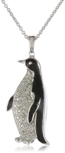 Sterling Silver Enamel Penguin Diamond Pendant Necklace (1/10 cttw, I-J Color, I2-I3 Clarity), 18" Feature