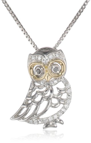 XPY Sterling Silver and 14k Yellow Gold Owl and Diamond Pendant Necklace, 18" Feature