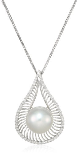 Baggins Drop Shaped White Gold with White South Sea Pearl and Diamonds Pendant Necklace Feature