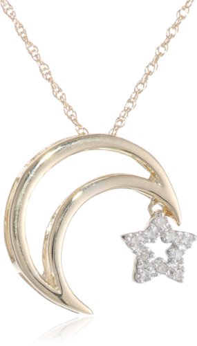 XPY 14k Two-Tone Gold Moon and Star Diamond Pendant (.03 cttw, J Color, I2 Clarity) Feature